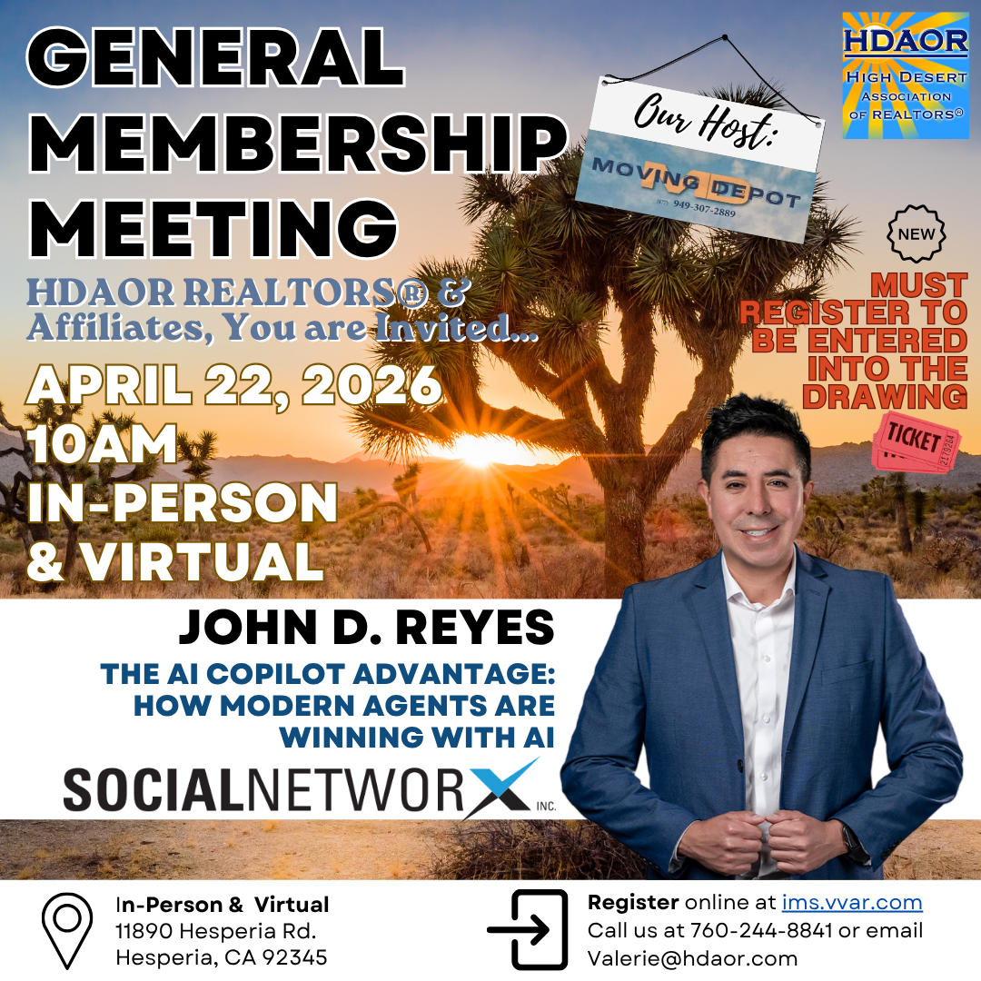 The High Desert Association of REALTORS® is closed at Noon today (4/3/26) in observance of Good Friday. Happy Easter!